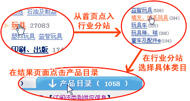 在首頁上的類別是27大行業(yè)下最熱門的3個二級行業(yè),您需要的產(chǎn)品可能是二級行業(yè)下更細更專業(yè)的產(chǎn)品,您點入下一級行業(yè)就有可能找到。以毛絨玩具為例: